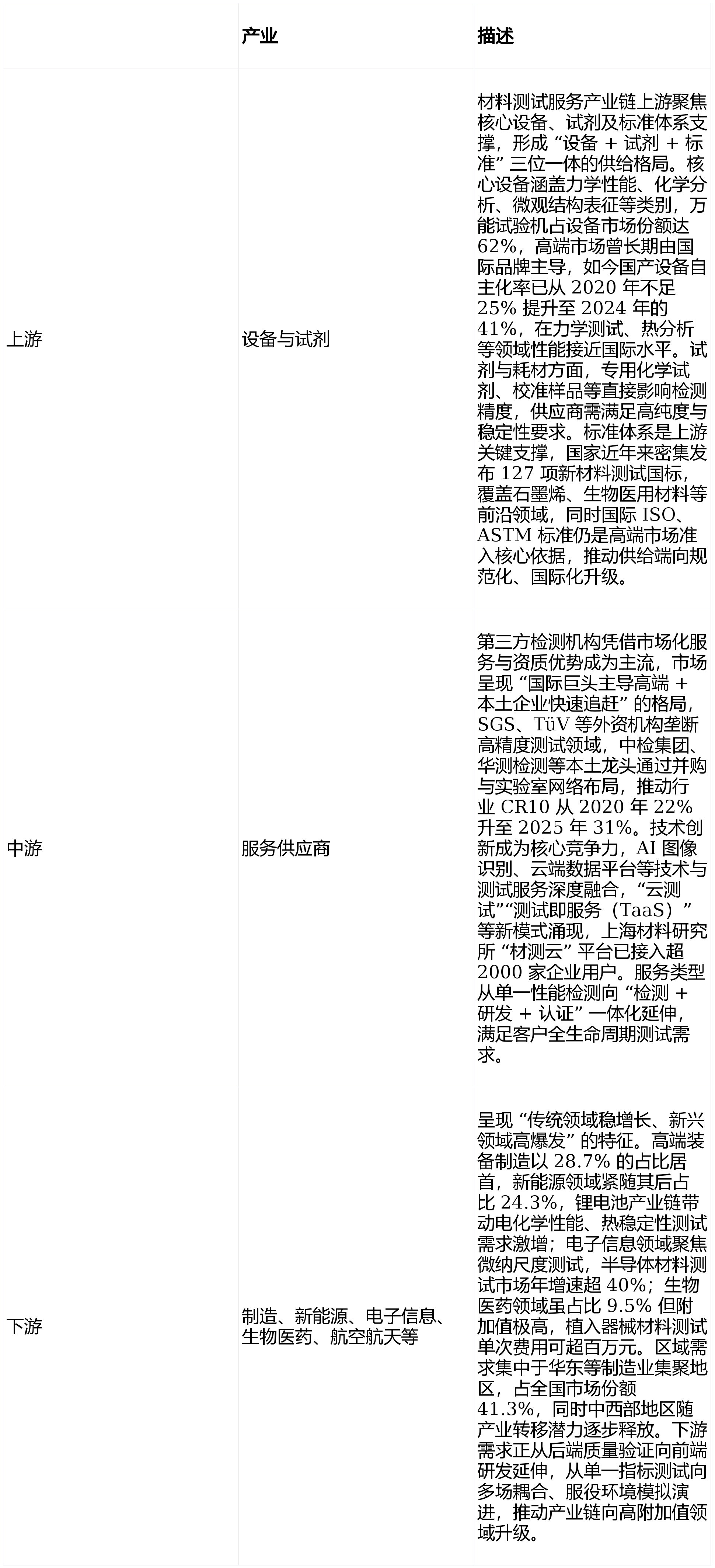材料来历:第三方材料、旧事报道、业内专家采访及QYResearch拾掇研究,普遍笼盖航空航天、汽车制制、电子电器、医疗器械等多个范畴。查看更多材料测试办事是指专业检测机构依托尺度化尝试设备、检测手艺及合规流程,来历:QYResearch 消费品研究核心。行业处于不竭变更之中,